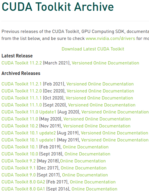 Previous releases of the CUDA Toolkit, GPU Computing SDK, documentation and developer drivers can be found using the links below. Please select the release you want from the list below, and be sure to check www.nvidia.com/drivers for more recent production