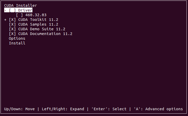 그래픽 드라이버는 설치가 되어 있으므로 Enter(엔터)를 눌러 취소를 한 후 CUDA를 설치합니다.