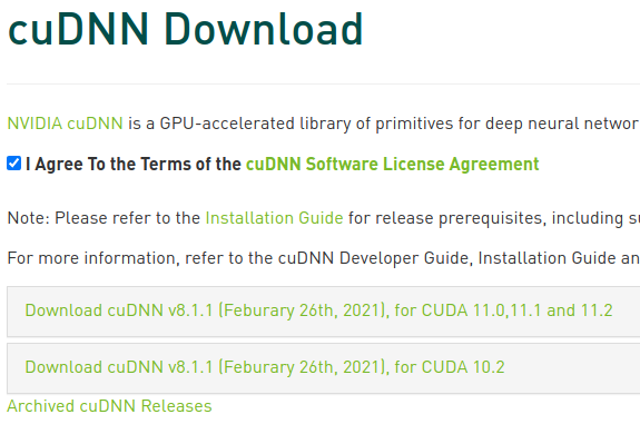 가입한 후 다운로드를 누르면 다음과 같은 화면이 뜨는데 젤 아래쪽에 Releases를 클릭하여 이전 버전의 cuDNN 또한 설치가 가능합니다.