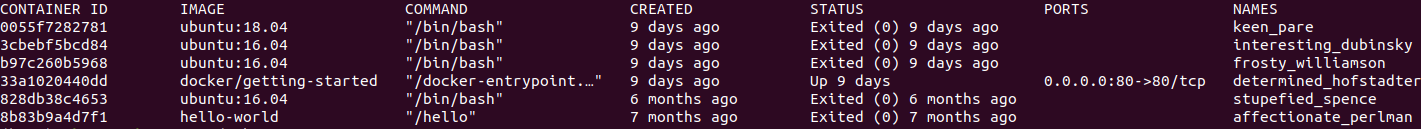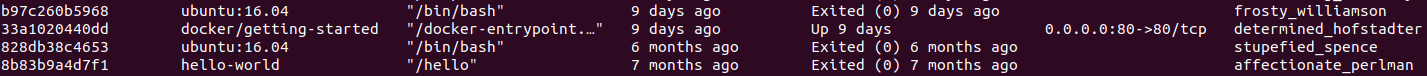docker ps -a